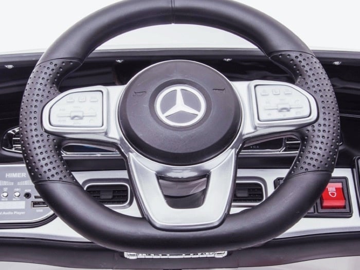 Furthermore, the children’s car is equipped with a leather seat, 5-point safety belt, rubber tires, suspension wheels, 2 real doors, working LED lights, dashboard lighting, USB, MP3 and mini SD input to play your own music. Furthermore, the Mercedes children’s car is finished with a high-gloss paint.