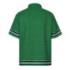Het opvallende geometrische patroon, geïnspireerd op architectonische labyrinten uit het Middellandse Zeegebied, wordt versterkt door de gestreepte boorden langs de mouwen, zoom en pijpen – een knipoog naar vintage sportmode, heruitgevonden voor de moderne trendsetter.